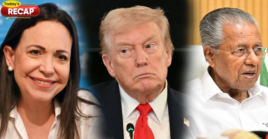 2025ലെ സമാധാനത്തിനായുള്ള നൊബേൽ പുരസ്കാര പ്രഖ്യാപനമാണ് ഇന്ന് ലോകമാകെ ഉറ്റുനോക്കിയിരുന്നത്. സമാധാന നൊബേലിനായി ഏറെ വാദഗതികൾ ഉയർത്തിയിരുന്നെങ്കിലും യുഎസ് പ്രസിഡന്റ് ഡോണള്ഡ് ട്രംപിന് പുരസ്കാര പ്രഖ്യാപനം ഏറെ നിരാശയാണ് സമ്മാനിച്ചത്. തുടർന്ന് നൊബേൽ കമ്മിറ്റിയെ വിമർശിച്ച് വൈറ്റ്ഹൗസ് രംഗത്തെത്തിയതും വാർത്താ പ്രാധാന്യം നേടി. പ്രധാനമന്ത്രി നരേന്ദ്ര മോദിയുമായുള്ള മുഖ്യമന്ത്രി പിണറായി വിജയന്റെ കൂടിക്കാഴ്ചയും മുനമ്പത്തേത് വഖഫ് ഭൂമിയല്ല എന്ന ഹൈക്കോടതിയുടെ നിരീക്ഷണവും ദ്വാരപാലക ശിൽപങ്ങളിലെ സ്വർണം പൂശിയതുമായി ബന്ധപ്പെട്ട് അന്വേഷണ റിപ്പോർട്ട് സമർപ്പിച്ചതും എം.ആർ അജിത് കുമാറിന് ബവ്കോ ചെയർമാന് സ്ഥാനം നൽകിയതും പ്രധാന വാർത്തകളായി. വായിക്കാം ഇന്നത്തെ പ്രധാന വാർത്തകൾ ഒരിക്കൽക്കൂടി.