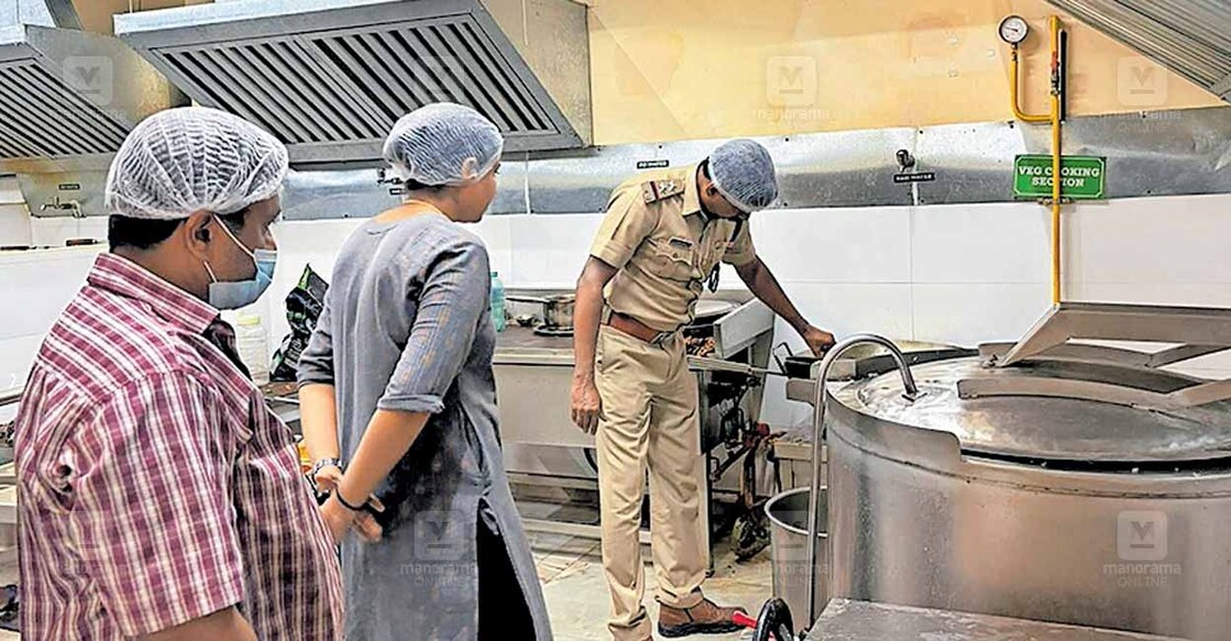 Vande Bharat food inspection conducted in Shornur. Railway police inspected food distribution centers as part of \“Operation Pothichoru\“ to ensure quality and safety, and no stale food was found. |