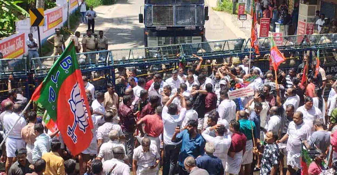 Sabarimala controversy sparks clashes in Kottayam. A BJP march to Minister VN Vasavan\“s residence turned violent, leading to police intervention and further protests from CPM workers. The situation escalated with allegations of assault and road blockades, demanding action under the POCSO Act.