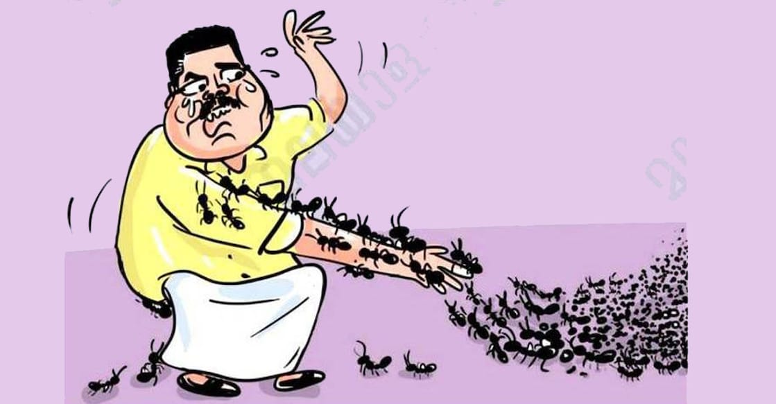 രണ്ടു കയ്യും ഇല്ലാത്തവന്റെ ചന്തിയിൽ ഉറുമ്പു കയറിയാൽ അനുഭവിക്കുന്ന ഗതിയിലാണ് പ്രതിപക്ഷം ഇവിടെ നിൽക്കുന്നത്’ എന്നാണ് കഴിഞ്ഞ ദിവസം നിയമസഭയിൽ ആലപ്പുഴ എംഎൽഎ പി.പി.ചിത്തരഞ്ജൻ കണ്ടുപിടിച്ചത്. സ്വാഭാവികമായും, രണ്ടു കയ്യും നഷ്ടപ്പെട്ട നിസ്സഹായൻ പ്രതിപക്ഷവും അവനു സമാധാനം കൊടുക്കാത്ത ഉറുമ്പ് ഭരണപക്ഷവും ആയിരിക്കാതെ തരമില്ല.