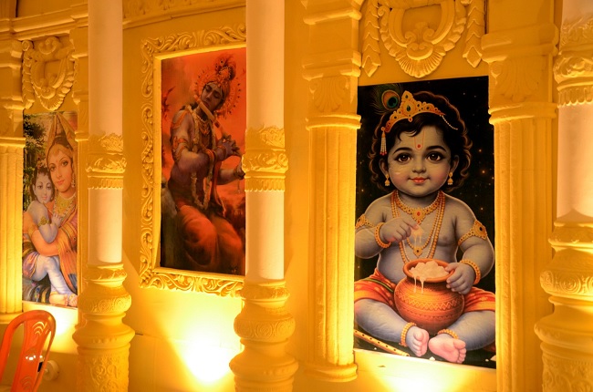 पंडाल में कई बदलाव किए गए हैं। पंडाल के भीतरी भाग में भगवान कृष्ण की अलग-अलग मुद्राओं की छवियां प्रदर्शित की गई हैं, जिनमें वह बांसुरी बजाते, विराट रूप में और मटकी से दही खाते नजर आ रहे हैं।